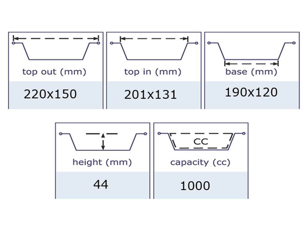 Aluminium Smoothwall Tray 220x150x44mm - 1000cc (Box of 480)